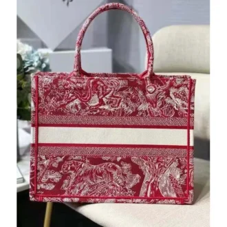 CD Unisex Medium Book Tote Burgundy Toile De Jouy Stripes Embroidery