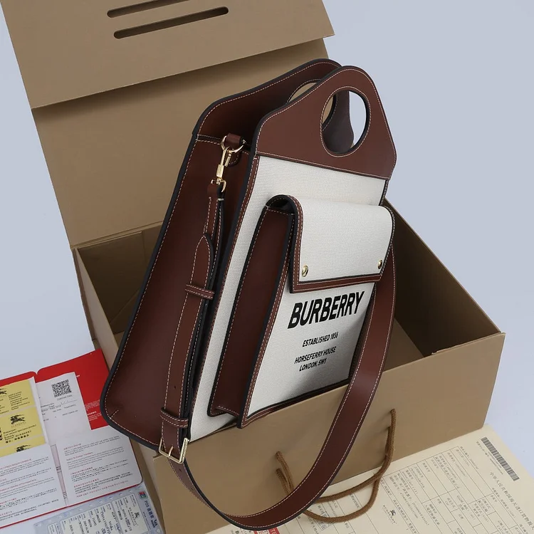 - An archive-inspired tote in canvas and topstitched leather. featuring a front pocket stamped with our Horseferry print. Carry by the reinforced top handles or detachable shoulder strap.