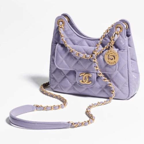 2024New chanel hobo bag,with shiny crumpled calfskin and gold-tone chain with double C logo