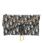 CHRISTIAN D Oblique Saddle Chain Long Wallet Blue