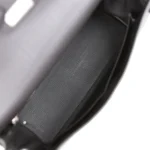 The interior is lined in black chevre and has one zip pocket with H engraved pull and two open pockets on the opposite side.