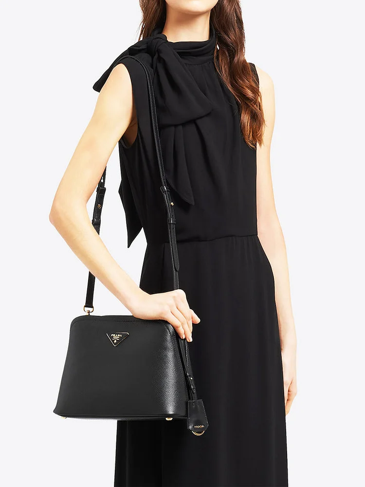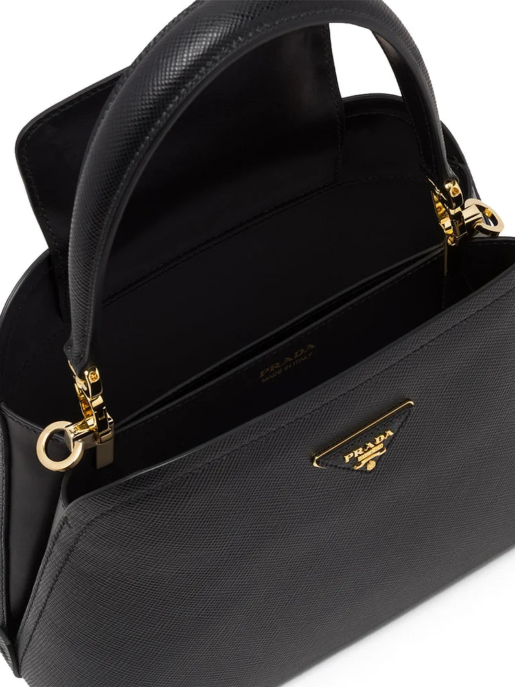 PP Small Saffiano Leather Double PP Bag in Black